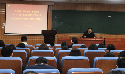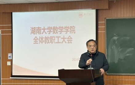3月19日下午,数学院召开全体教职工大会,宣讲学校第十次党代会精神,号召全体教职工立足岗位,砥砺奋进,为建设富有历史文化传承的中国特色世界一流大学贡献数学智慧和力量。会议由蒋月评书记主持,全院教职工参加。