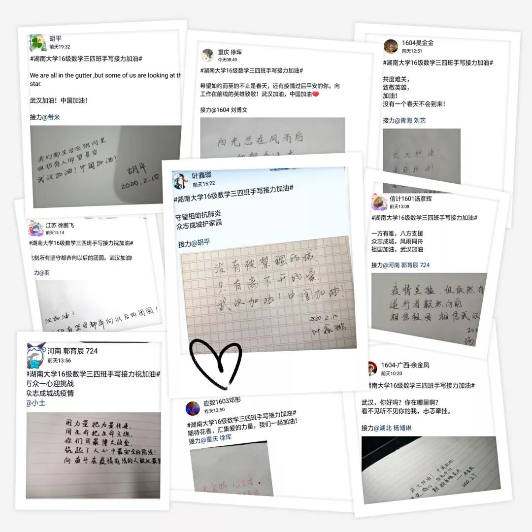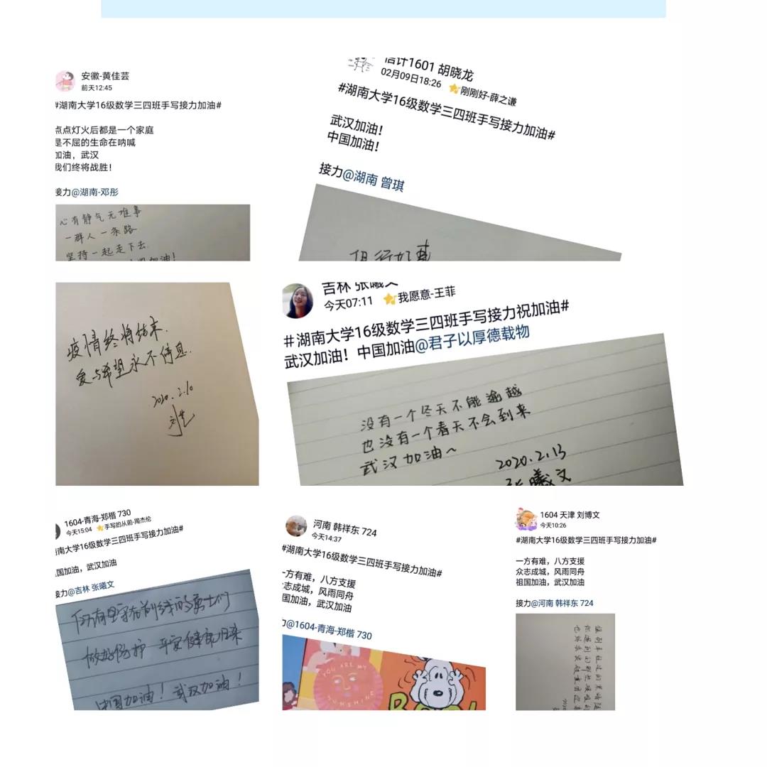 16级数学三四班手写接力加油”活动,利用线上资源,为战“疫”贡献自己的力量。