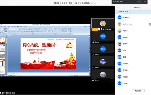 党委教工第二支部响应学院党委号召,通过腾讯会议在线上开展“同心抗疫,勇担使命”主题党日活动。